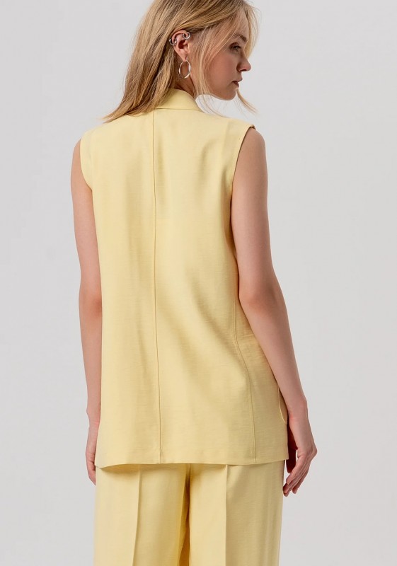Chaleco de corte regular con botonadura sencilla. Reverso de corte clásico, botón central para abrir y bolsillo de parche.