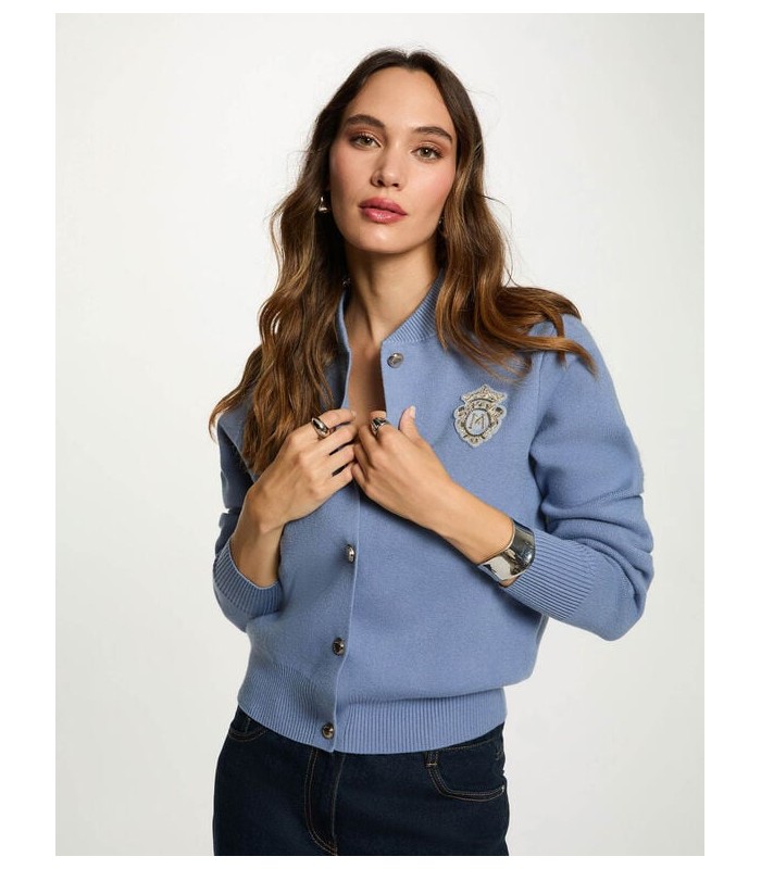 Este jersey corto ajustado realza las formas con elegancia gracias a su corte ceñido al cuerpo. Su cuello teddy estructurado y moderno aporta un estilo a la moda, mientras que los bordados delicados añaden un toque refinado y femenino. Los botones colocados sutilmente completan este tejido chic casual.
