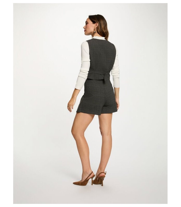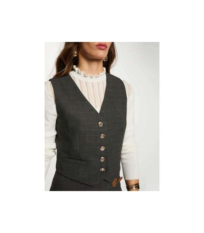 Este chaleco corto y ajustado encarna la elegancia moderna con sus rayas gráficas. Su corte favorece las formas mientras estructura la silueta con feminidad. Los botones aportan un toque chic y refinado, perfectos para un estilo working girl afirmado.