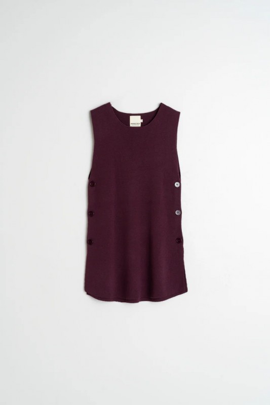 Dale un toque diferente a tu look con este chaleco largo con botones y aberturas laterales. Confeccionado en un punto de lana combinado con hilo de origen marino