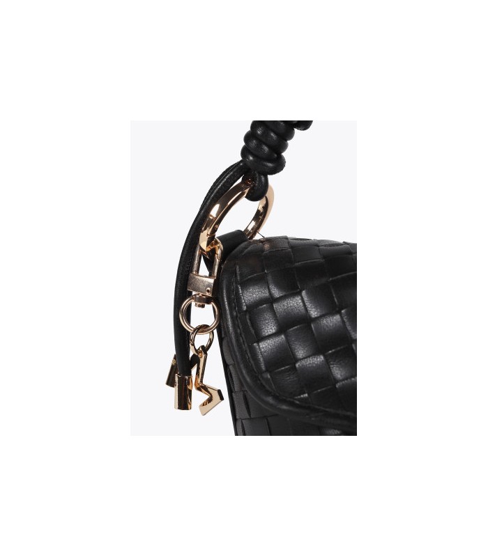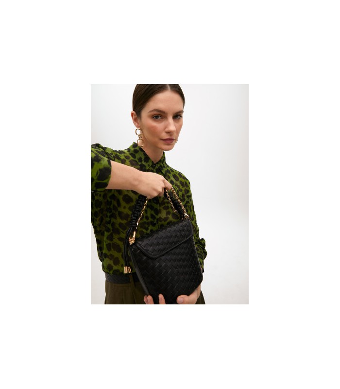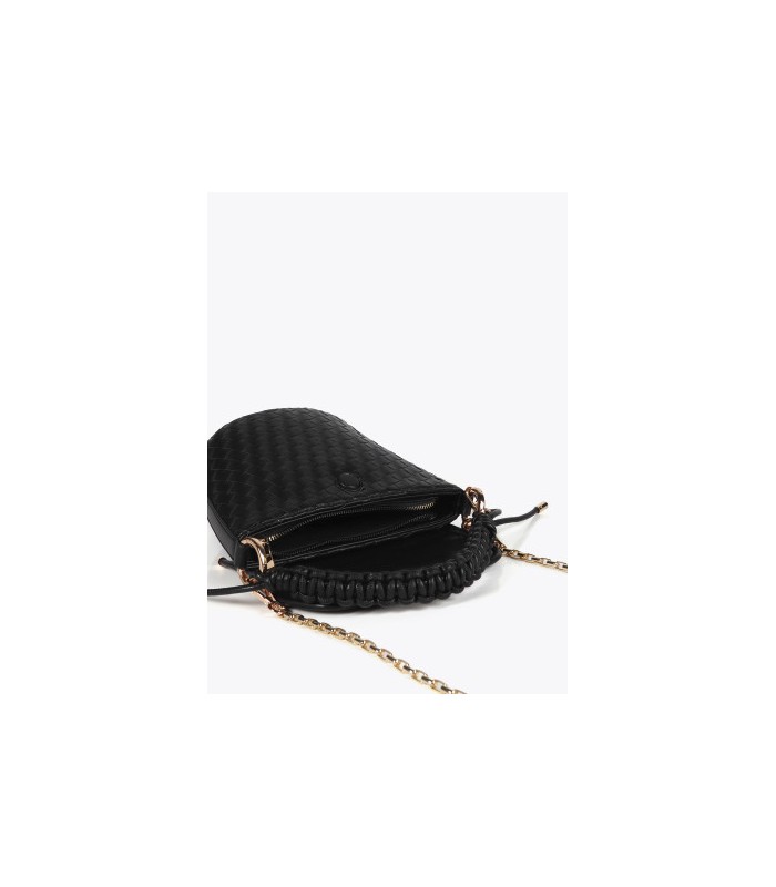 Elegante bandolera con diseño de material trenzado que imita la piel.
