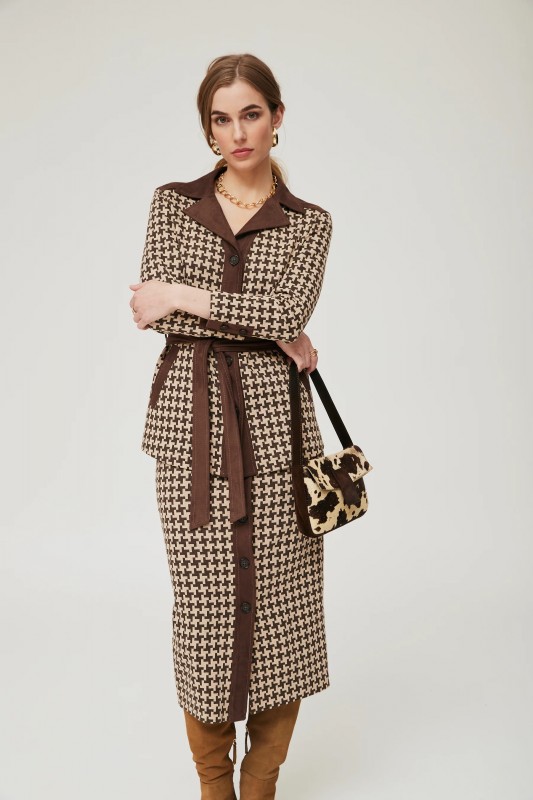 CHAQUETA EN JACQUARD DE PUNTO BICOLOR CON CUELLO SOLAPA Y CINTURON