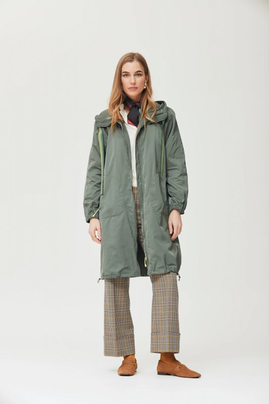 ABRIGO TECNICO WATERPROOF CON CAPUCHA Y BAJO AJUSTABLE. ALTURA MODELO 1,75CM