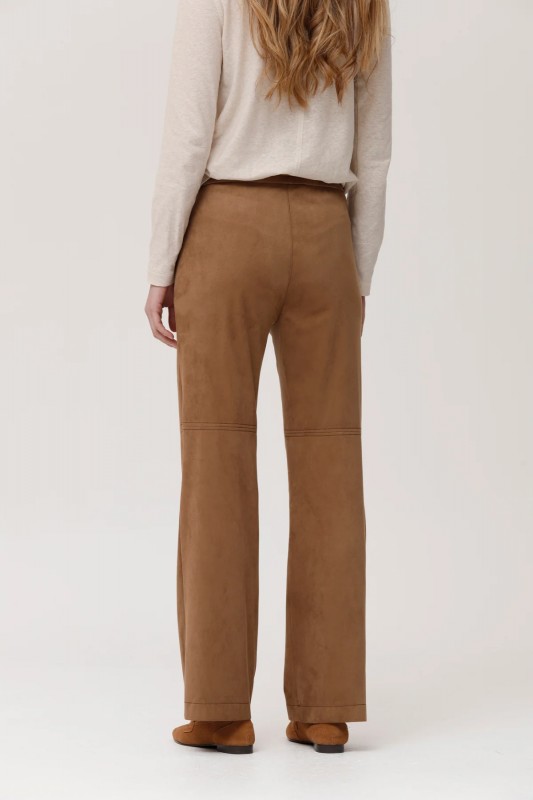 PANTALON EFECTO ANTE, CON CORTE EN RODILLA Y CINTURA ELÁSTICA. ANCHO 24CM Y LARGO 73CM