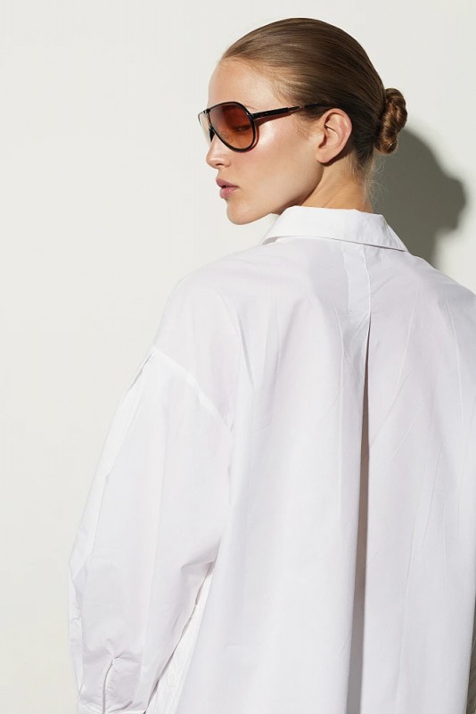 Camisa oversize, mangas cortas, con cuello, cierre con botones, loose fit, algodón