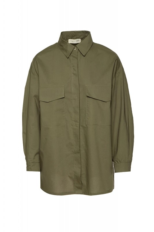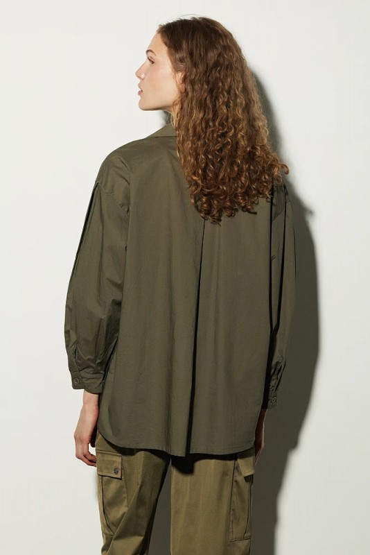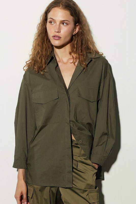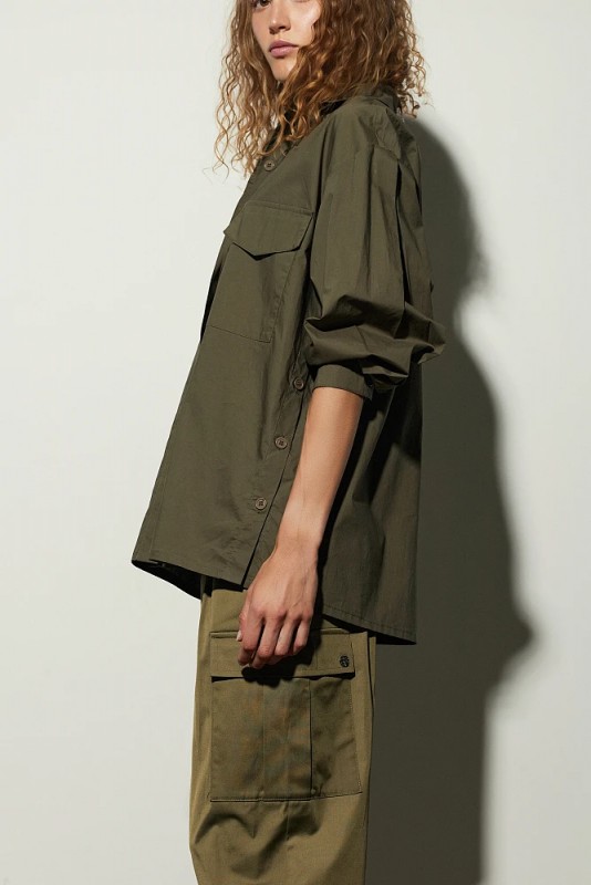 Camisa oversize, mangas cortas, con cuello, cierre con botones, loose fit, algodón
