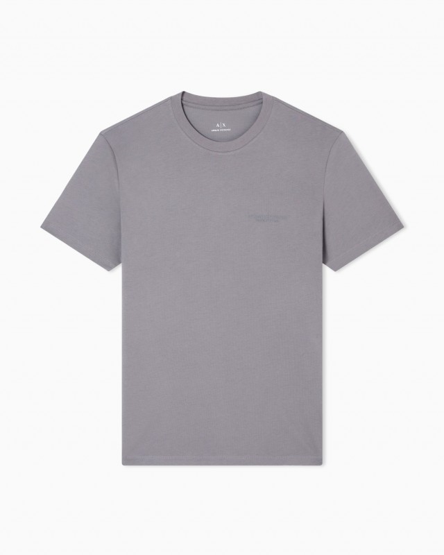Camiseta de suave jersey de algodón, una prenda esencial para quienes aman el estilo minimalista con un toque distintivo. Esta prenda destaca por la elegante inscripción "Armani Exchange Milano / New York" impresa tono sobre tono en el pecho, un detalle sofisticado que no llama la atención, pero que se agradece. Con su clásico cuello redondo y mangas cortas, ofrece comodidad y una increíble versatilidad para tus looks diarios.