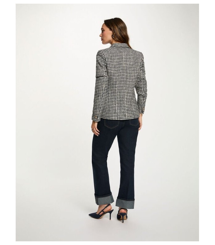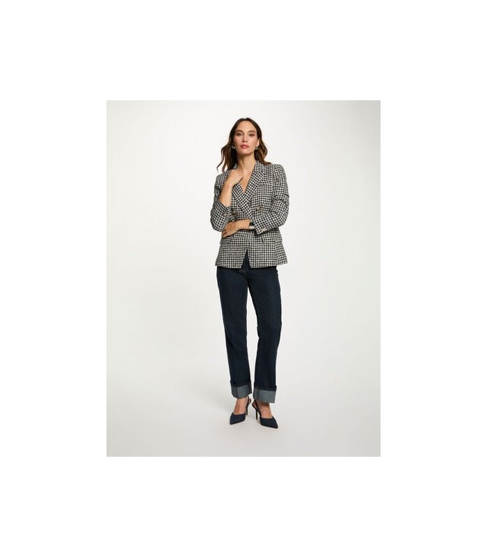 Esta elegante y atemporal americana estructura la silueta con una refinada naturalidad. Su corte recto define un estilo moderno y seguro, perfecto para un look de trabajo sofisticado. Una prenda esencial que encarna el glamour francés en toda su controlada simplicidad