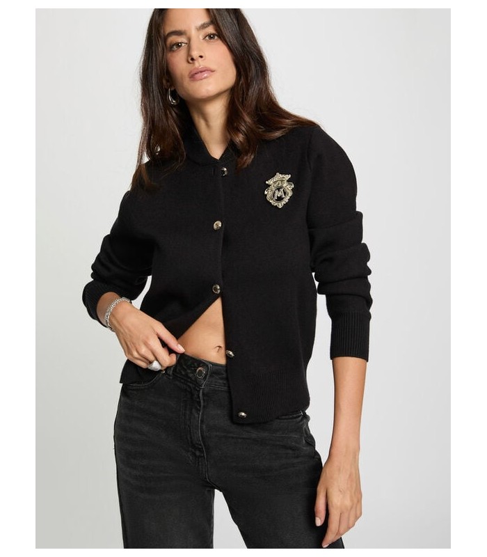 Este jersey corto ajustado realza las formas con elegancia gracias a su corte ceñido al cuerpo. Su cuello teddy estructurado y moderno aporta un estilo a la moda, mientras que los bordados delicados añaden un toque refinado y femenino. Los botones colocados sutilmente completan este tejido chic casual.