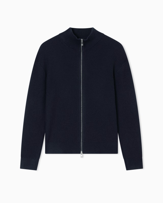 Cárdigan confeccionado en suave punto acanalado que aporta textura y un ajuste impecable. Esta versátil prenda es el aliado perfecto para tus looks, gracias a su práctico cierre frontal con cremallera y cuello alto que ofrece un toque de elegancia contemporánea y protección. Sus líneas limpias y su confección definida lo convierten en una prenda clave para capas sofisticadas o en la protagonista de tu conjunto.