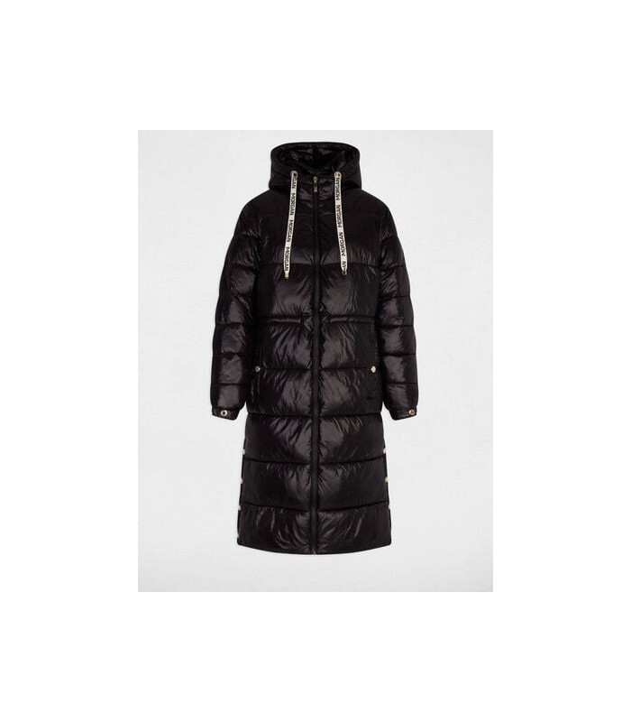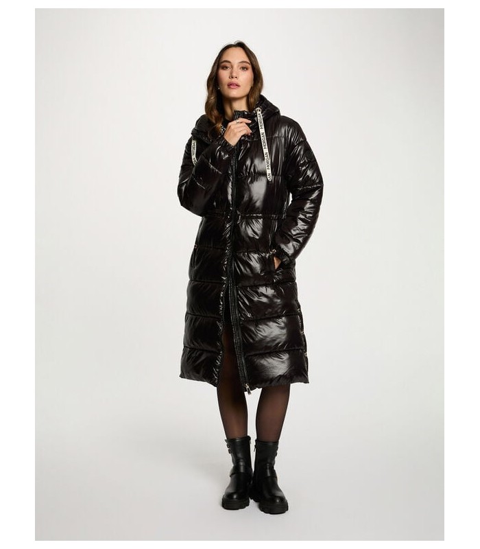 Esta chaqueta larga y recta acolchada alarga la silueta con elegancia. Su aspecto brillante capta la luz, añadiendo un toque chic y moderno a esta prenda informal. El cordón ajustable permite un ajuste sutil del volumen, mientras que los botones aportan un acabado refinado que realza el conjunto.