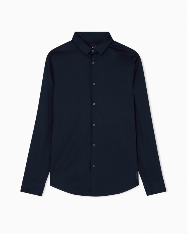 Camisa slim fit de popelín de algodón elástico de color azul marino