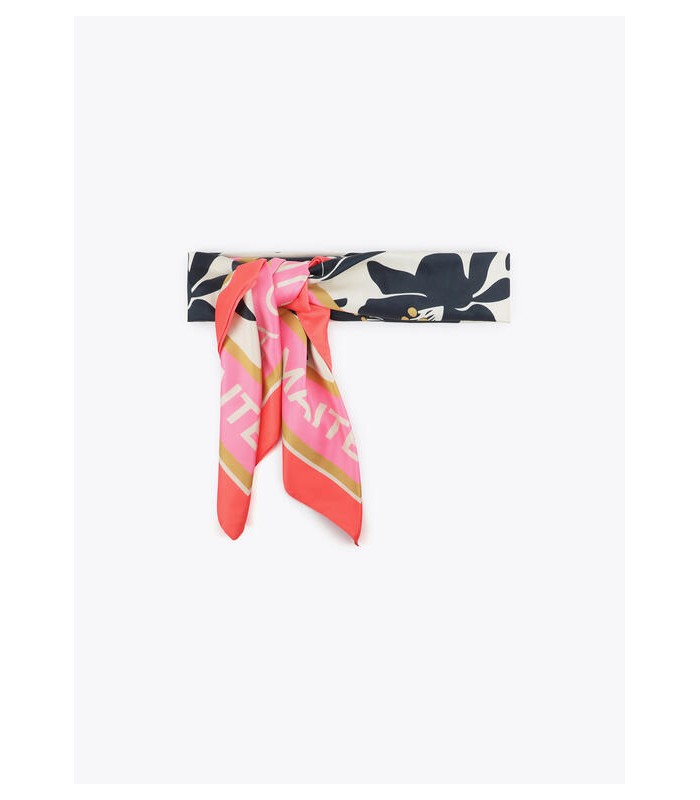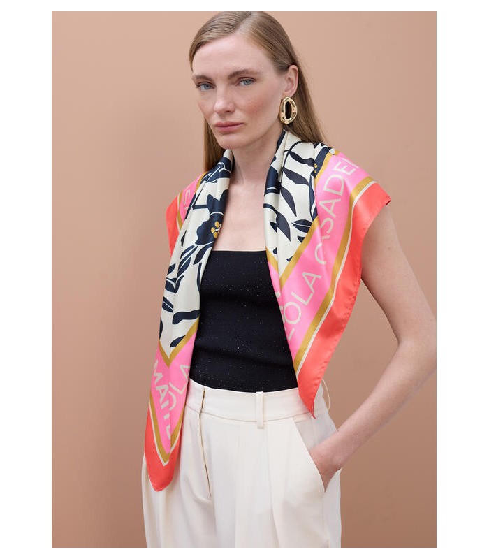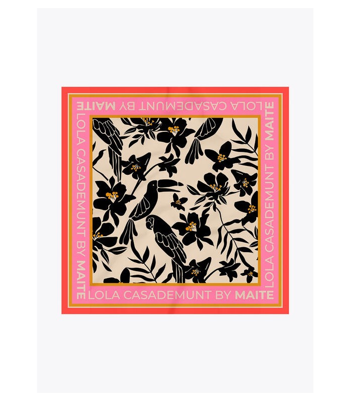 Pañuelo satinado con estampado floral y aves