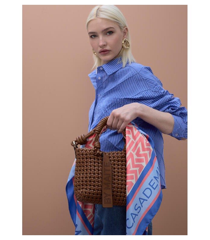 Complementa tu look con nuestra bandolera trenzada efecto piel. Diseño en color marrón con exclusivos nudos que aportan volumen y estilo. Asa ajustable para llevar al hombro o cruzada. Cierre superior con cremallera para mantener tus pertenencias seguras.